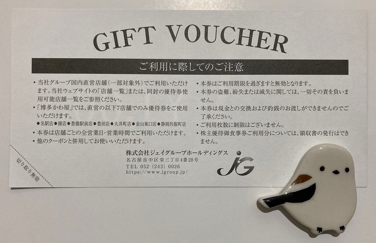優待券3,000円分(1,000円券×3枚)をいただきました。