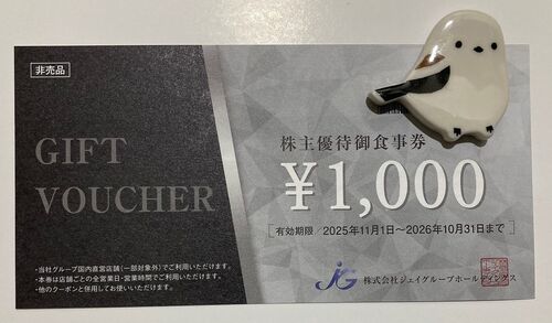 2025年10月30日に普通郵便(郵便局)にて株式会社 ジェイグループホールディングス(3063)の株主優待が到着しました。桐谷さんがテレビ番組で訪問した、秋葉原のうな匠で有名な優待券です。おすすめ度や内容について紹介します。 取得した優待情報・おすす…
